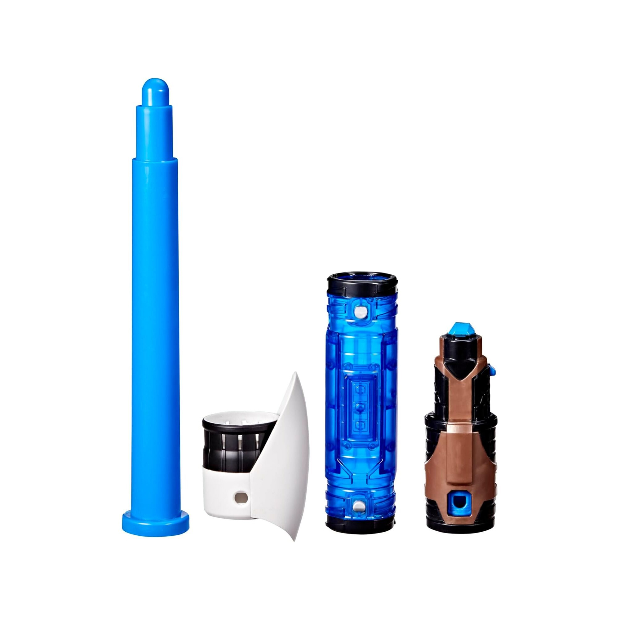 این نسخه از شمشیر اوبی وان کنوبی از سری Kyber Core ساخته شده است و همانند کریستالهای افسانهای کایبر، دارای روکش شفاف و درخشان است. شمشیر از ۴ قطعه تشکیل شده: تیغه آبی قابلگسترش، درپوش، روکش و هسته مرکزی. به سادگی میتوانید این قطعات را به هم متصل کنید و شمشیر شخصی خود را بسازید—همانطور که یک جدای واقعی انجام میدهد!