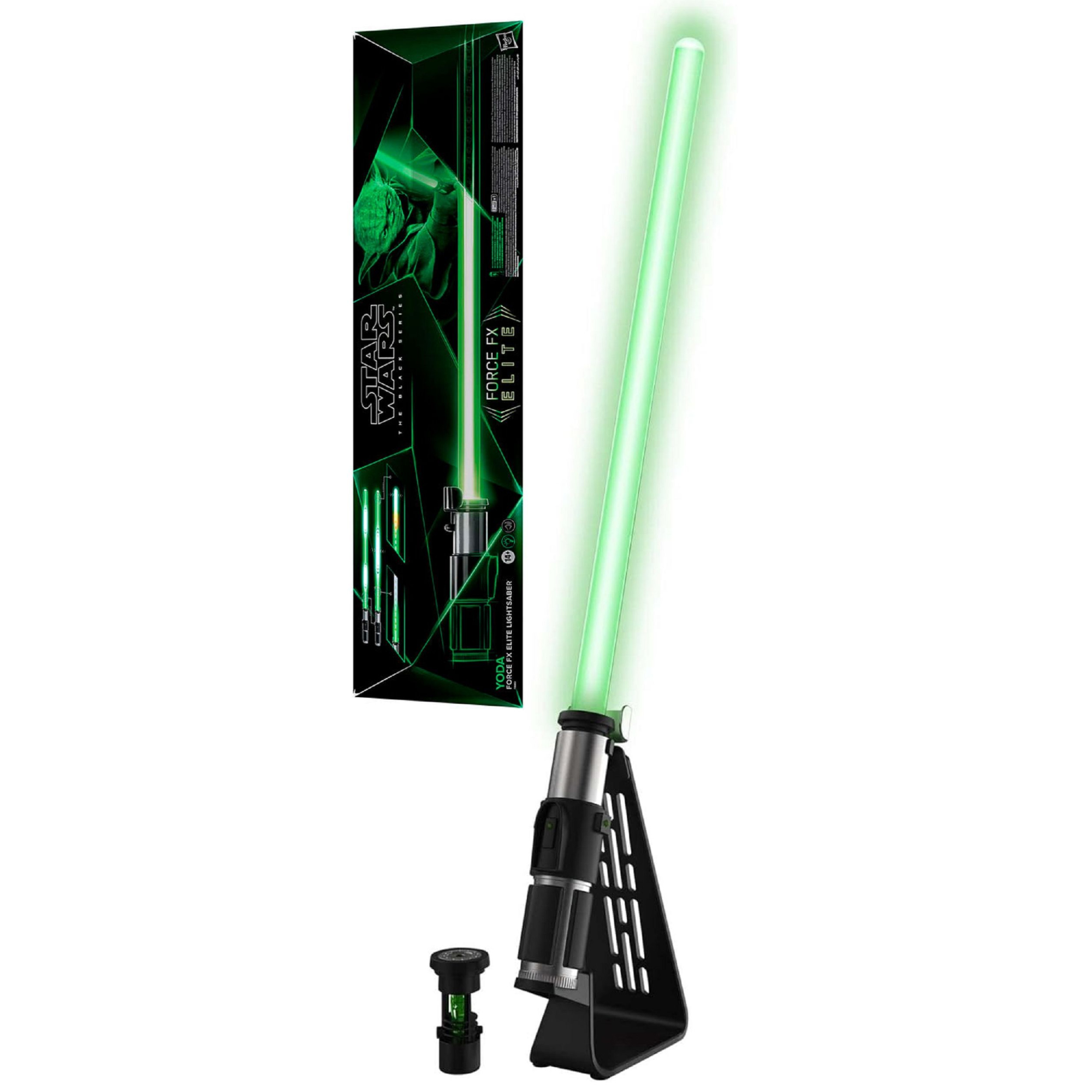 Hasbro - Star Wars - The Black Series Yoda Lightsaberشمشیر نوری یودا Force FX Elite با افکتهای نور و صدا، طول ۱ متر، باتری شارژی و استند، تجربهای واقعی از نبردهای Star Wars!